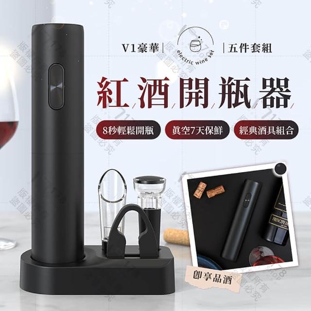 178小舖紅酒開瓶器 五件組(電動開瓶器 開瓶器 醒酒器 自動開瓶器 紅酒塞 酒瓶塞 倒酒器 開罐器 紅酒開瓶套組)