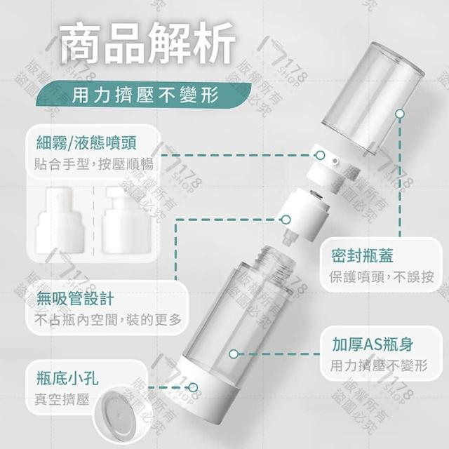 178小舖真空分裝瓶 15ml 4入 (乳液瓶 噴霧瓶 擠乳瓶 分裝瓶 旅行分裝瓶 真空瓶 分類瓶 真空乳液瓶 分裝罐)