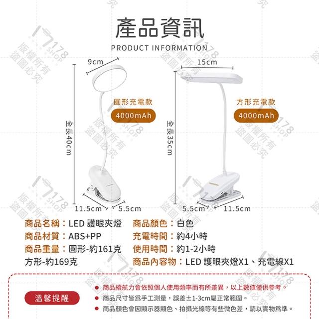 178小舖LED護眼夾燈 4000mAh大容量 (LED檯燈 星環夾燈 燈夾 三段調光 工作燈 小夜燈 床頭燈 小檯燈)
