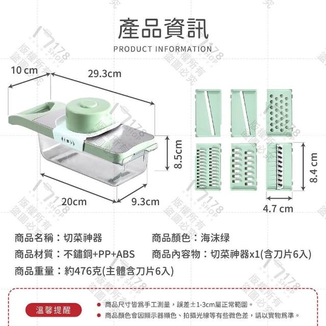 178小舖多功能 切菜神器 6種刀片 (切菜機 刨絲器 切片器 磨泥器 搗蒜器 刨片器 切絲器 削皮刀 切菜器 廚房備料)