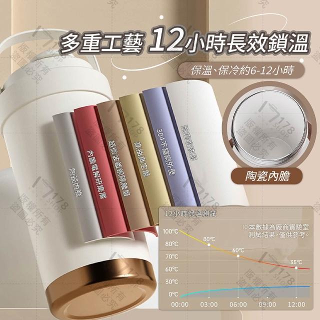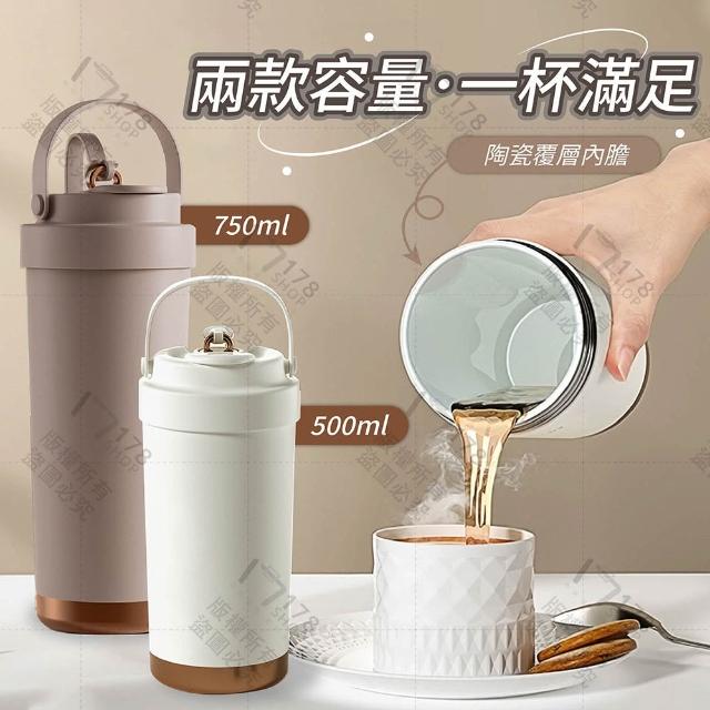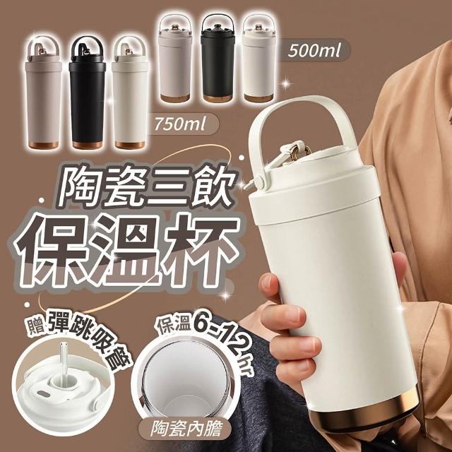 178小舖陶瓷保溫杯 (三飲杯 陶瓷內膽 750ml 大容量 咖啡杯 隨行杯 吸管杯 環保杯 手提保溫瓶 304不鏽鋼)