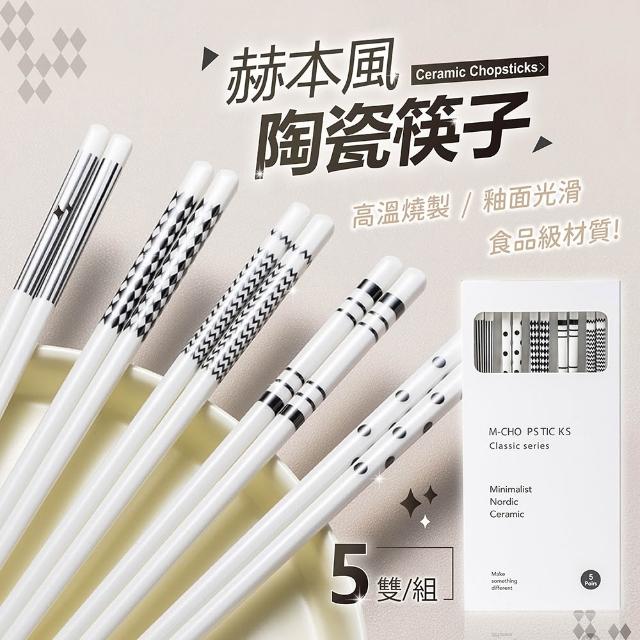 178小舖赫本風陶瓷筷子 5雙組 可進洗碗機 (防霉 不發黑 耐高溫 骨瓷質感 家用筷子 陶瓷筷子 餐具 筷子 環保筷)