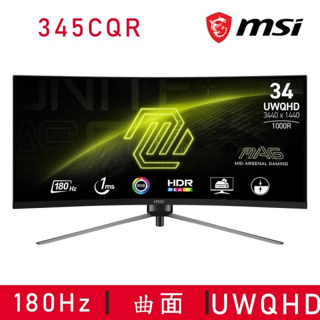 MSI 微星345CQR 曲面電競螢幕34型/3440*1440/21:9/180Hz/1ms/VA/HDMI