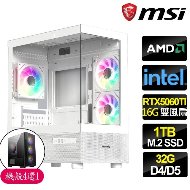 MSI 微星GeForce RTX5060 Ti 16G{甜到悲傷}海景房電競電腦(AMD R5 R7 R9 Intel i5 i7 Ultra U5 U7 U9/B650 B760 B860/32G DDR4 DDR5/1TB M.2 SSD/650W 銅牌/可玩魔物獵人)