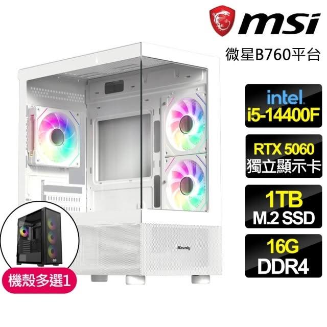 MSI 微星RTX5060 {雙十一限定}海景房電競電腦(Intel Core i5-14400F/B760/16G D4/1TB)