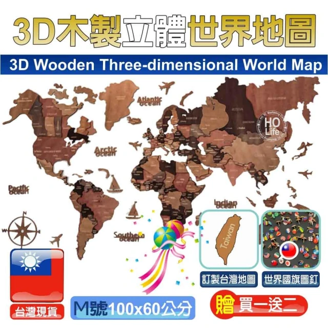 3D木製立體世界地圖 贈二大好禮 世界地圖 3D地圖 新居落成禮物 新屋禮 入厝禮 新屋落成(世界地圖)