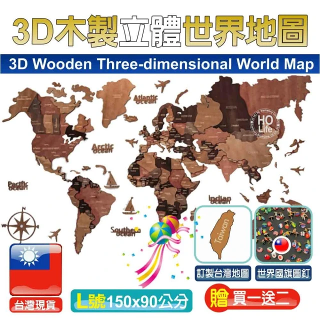 3D木製立體世界地圖 贈二大好禮 世界地圖 3D地圖 新居落成禮物 新屋禮 入厝禮 新屋落成(世界地圖)