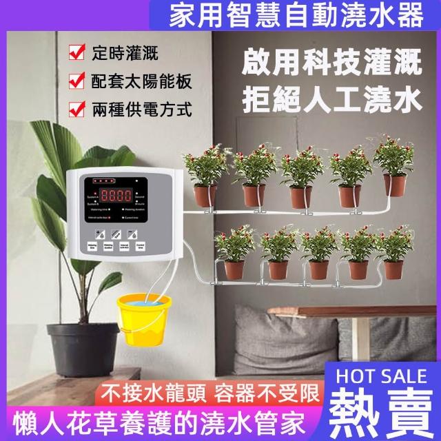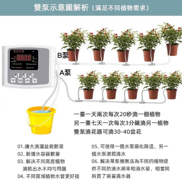 灌森 園藝陽台澆花器 太陽能電池雙供電(自動澆水神器 雙泵雙系統 20米長可澆灌30個盆栽)