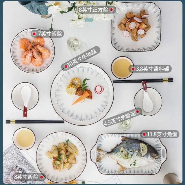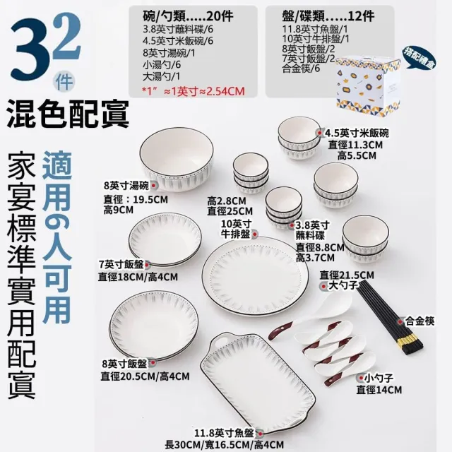 R.H獵戰 陶瓷餐具組 6人32件套禮盒裝 日式簡約碗盤餐具組 (家用碗盤組 家用陶瓷套餐) 佩爾森