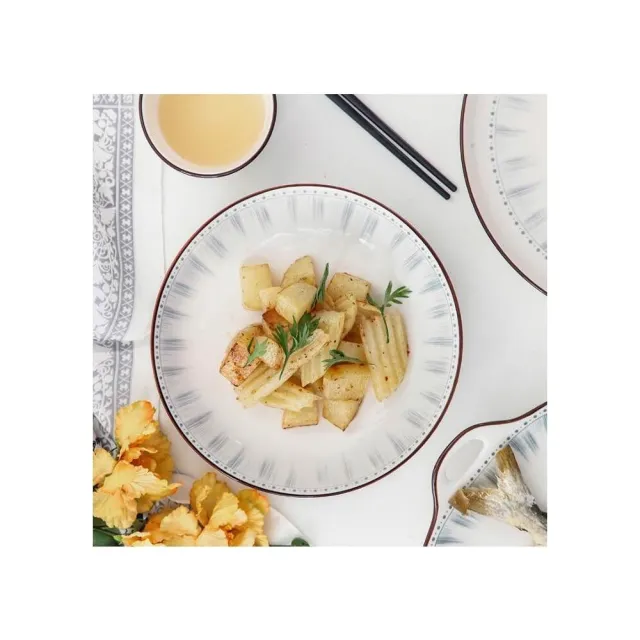 黑線陶瓷拼盤 8梅花盤1湯碗