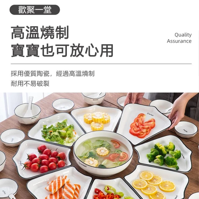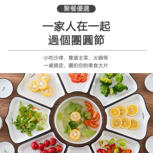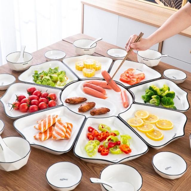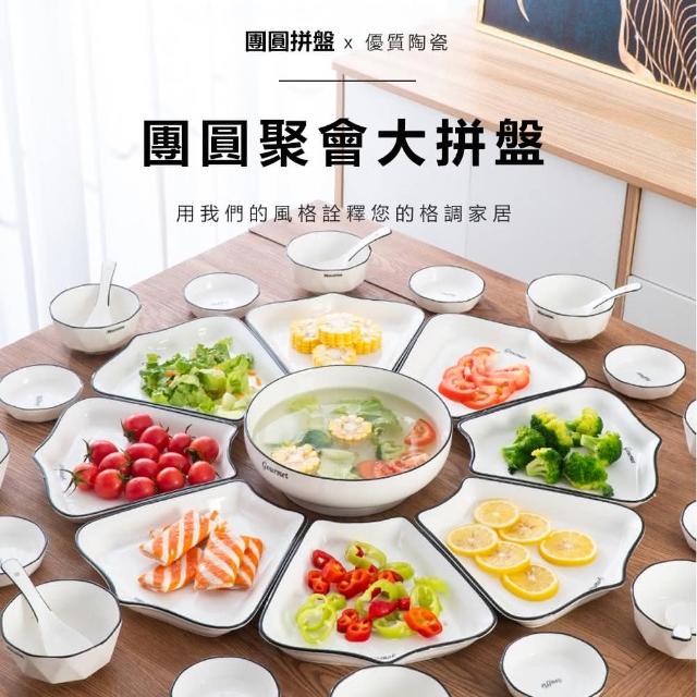 R.H獵戰 十里桃花陶瓷拼盤 黑線陶瓷拼盤 家宴拼盤餐具(拼盤餐具 碗碟盤套裝)