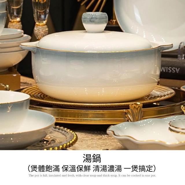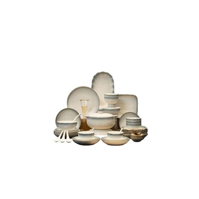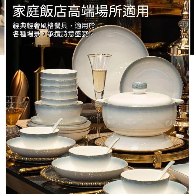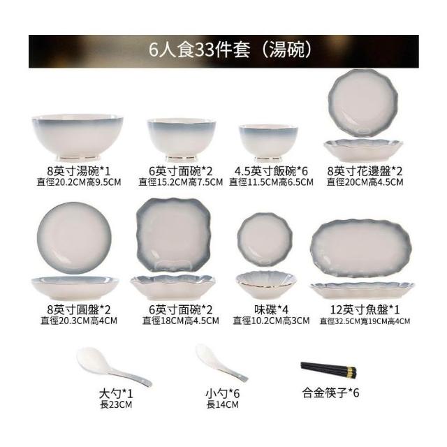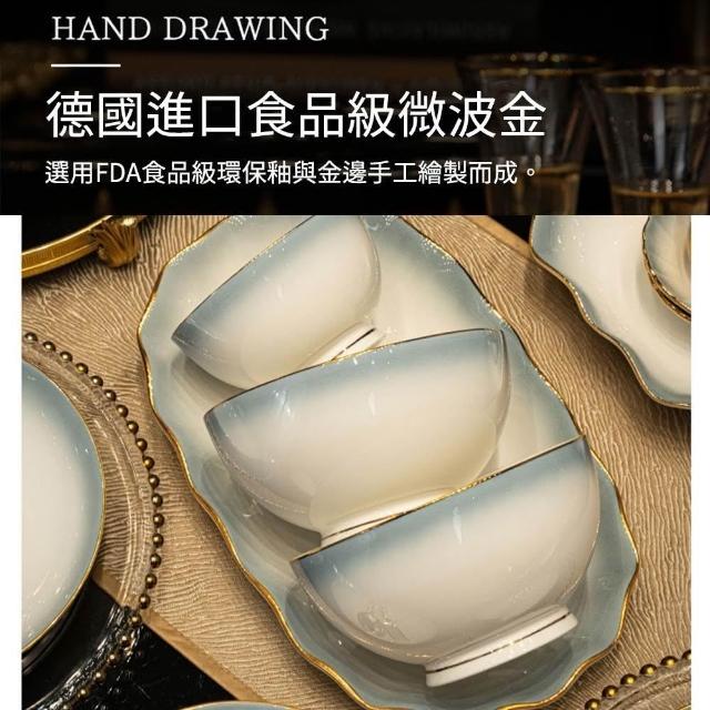 R.H獵戰 金邊陶瓷餐具 餐具套裝 日式6人食33件 碗盤瓷器套裝(日式輕奢風瓷器) 夜宴