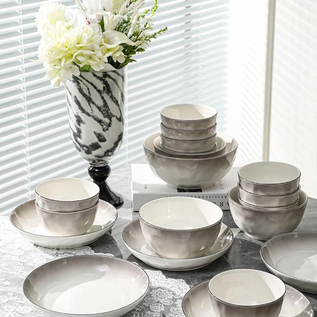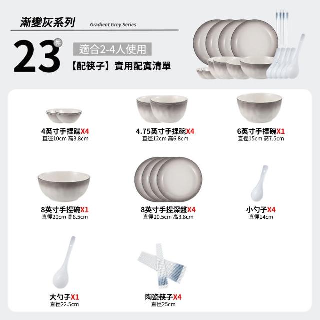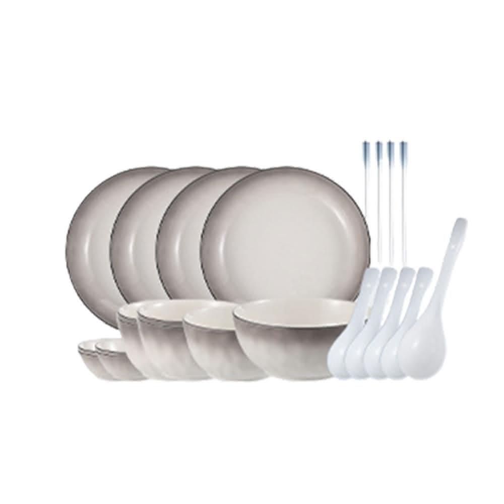 R.H獵戰 佩爾森漸變灰餐具組 釉下彩陶瓷餐具 4人食23件套(高級漸變灰餐具 碗盤套裝 碗碟組合)