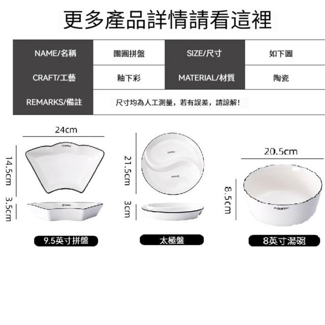 R.H獵戰 家用陶瓷拼盤套裝 盤子組合 陶瓷餐盤 家用圓桌擺盤 扇形菜盤 陶瓷餐具