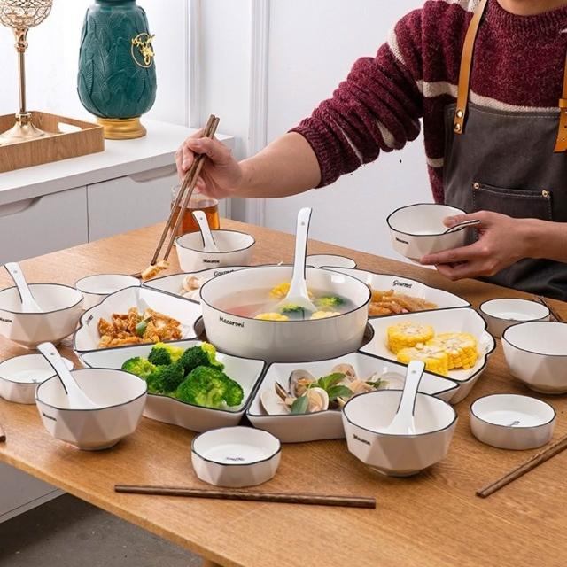 R.H獵戰 家用陶瓷拼盤套裝 盤子組合 陶瓷餐盤 家用圓桌擺盤 扇形菜盤 陶瓷餐具