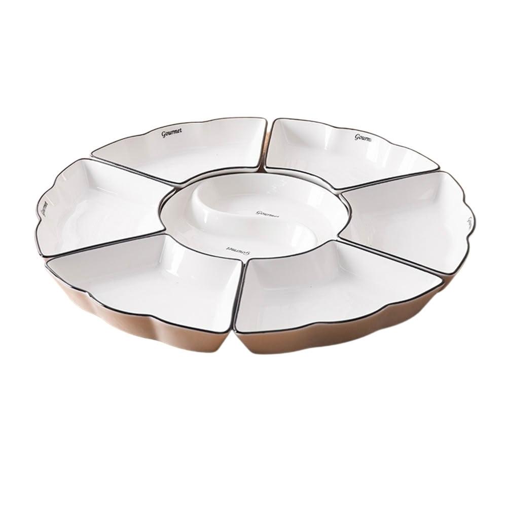R.H獵戰 家用陶瓷拼盤套裝 盤子組合 陶瓷餐盤 家用圓桌擺盤 扇形菜盤 陶瓷餐具