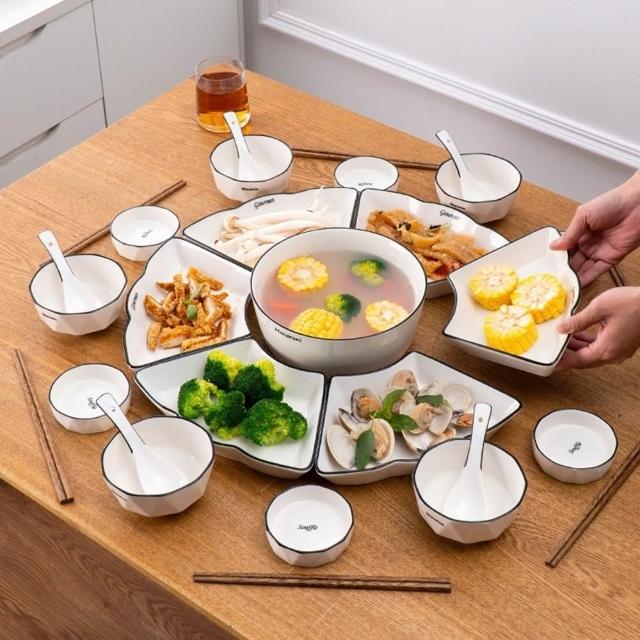 R.H獵戰 家用陶瓷拼盤套裝 盤子組合 陶瓷餐盤 家用圓桌擺盤 扇形菜盤 陶瓷餐具
