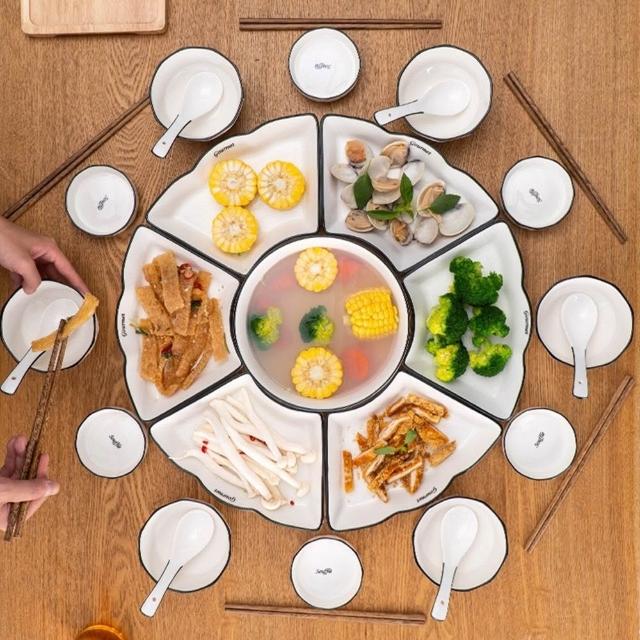 R.H獵戰 家用陶瓷拼盤套裝 盤子組合 陶瓷餐盤 家用圓桌擺盤 扇形菜盤 陶瓷餐具
