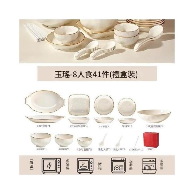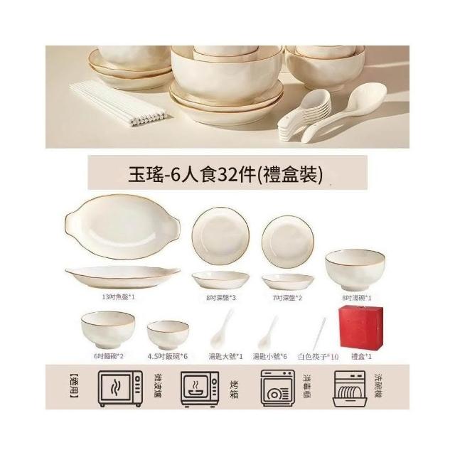 R.H獵戰 高級感陶瓷碗碟套裝 6-8人餐具套裝 家用陶瓷餐具 喬遷新居碗筷 送禮盒