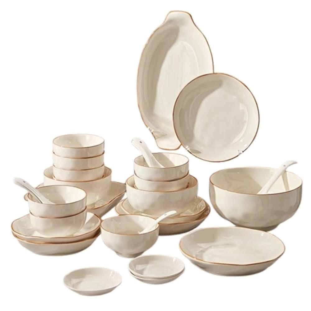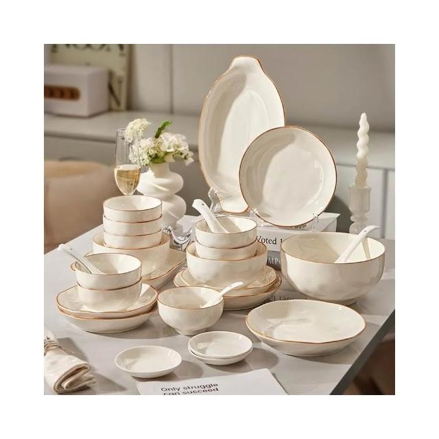 R.H獵戰 高級感陶瓷碗碟套裝 6-8人餐具套裝 家用陶瓷餐具 喬遷新居碗筷 送禮盒