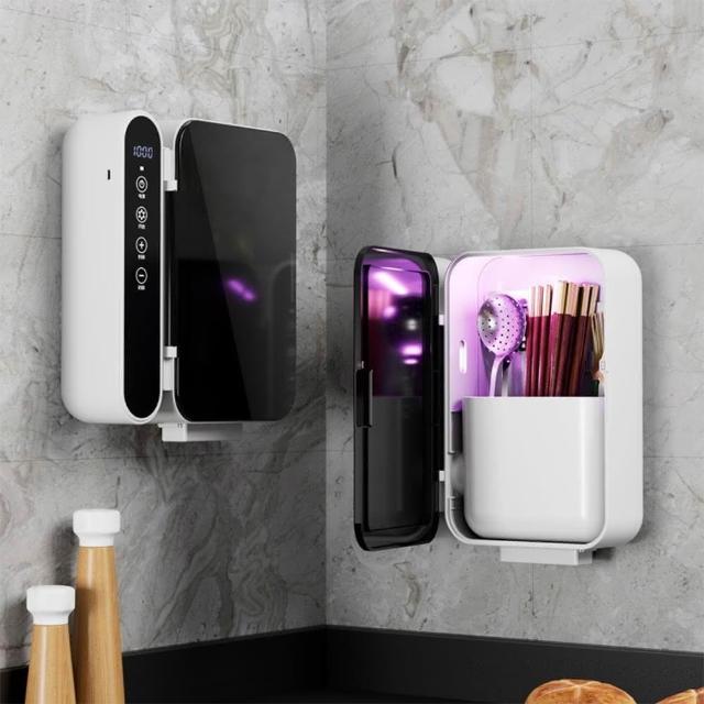 R.H獵戰 筷子消毒機 紫外線消毒盒 分離式筷子收納筒 廚房瀝水帶蓋 壁掛免打孔 多功能收納盒 八福