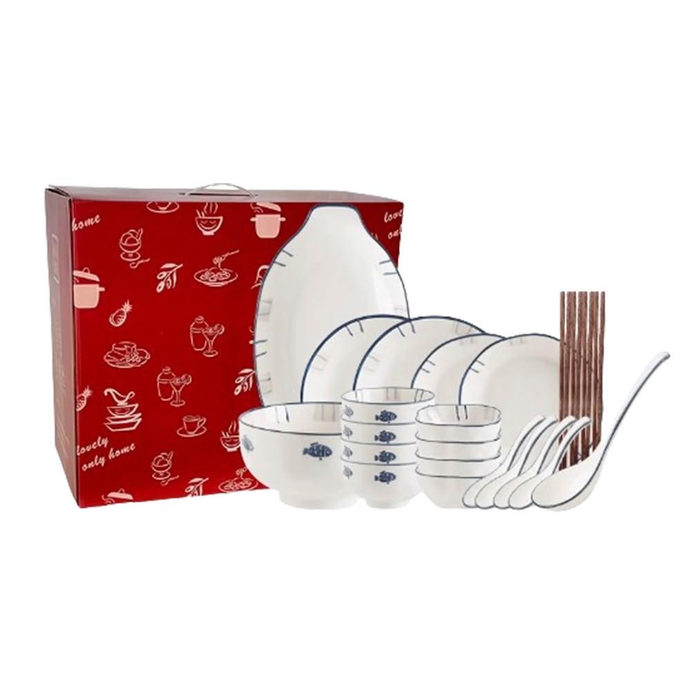 R.H獵戰 餐具組 日式碗盤組合 4人食23件禮盒裝 釉下彩工藝餐具 餐盤組 餐具套裝 碗盤禮盒 入厝餐具 井原櫻如魚得水