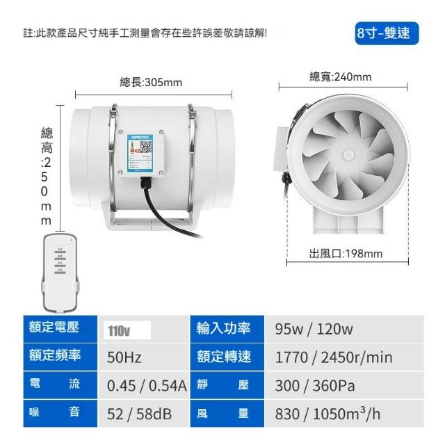 R.H獵戰 美規排風扇 節能低雜訊 雙速換氣扇 管道風機 排風機 排風扇 可遙控
