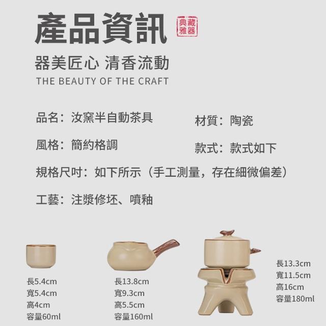 功夫茶具組 全套茶具套裝 汝窯半自動茶具 隔熱防燙 舒適把手 懶人泡茶壺 茶具套裝 報成汝窯