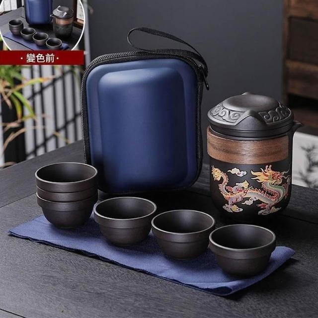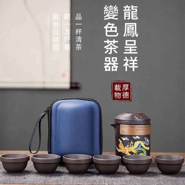 紫砂茶壺茶具組 大容量泡茶壺 旅行茶具組 帶茶濾茶杯茶具 龍鳳紫砂6杯旅行組 余惜