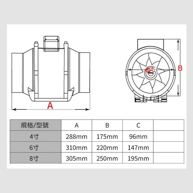 R.H 獵戰換氣扇 渦輪扇 單速排風扇 管道風機 渦輪增壓 雙接管排氣扇 4/6/8吋【換氣 排煙 通風】輝子