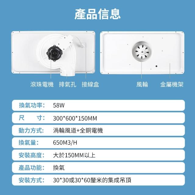 R.H 獵戰 大功率排風扇 30×60cm 跑道型集成吊頂換氣扇 廚房/衛生間專用排氣扇