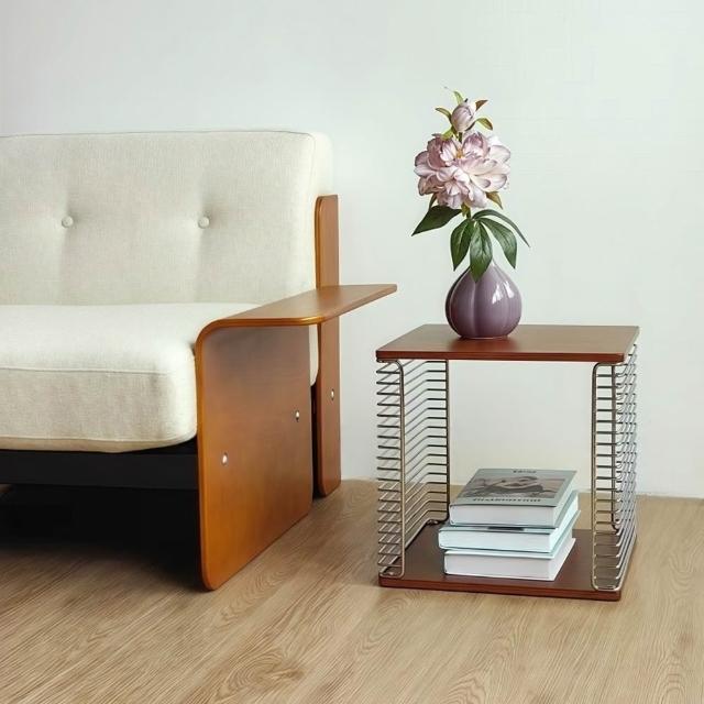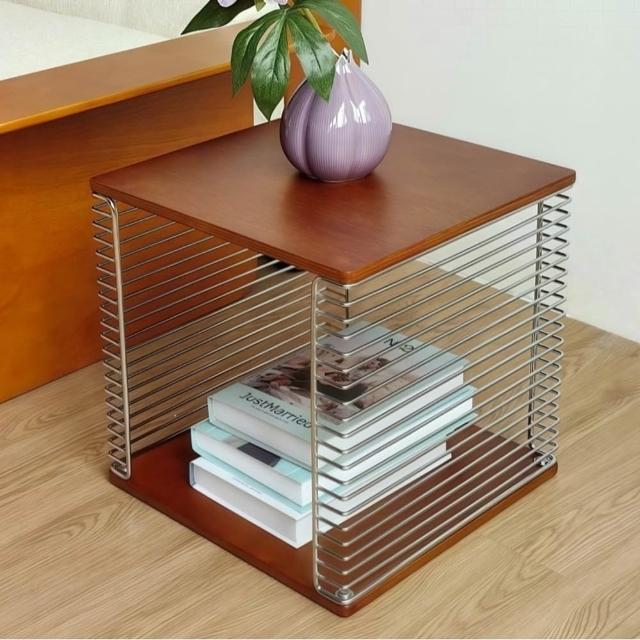 R.H 獵戰北歐模組邊几 中古風金屬置物架|不鏽鋼+實木可移動茶几|沙發邊桌