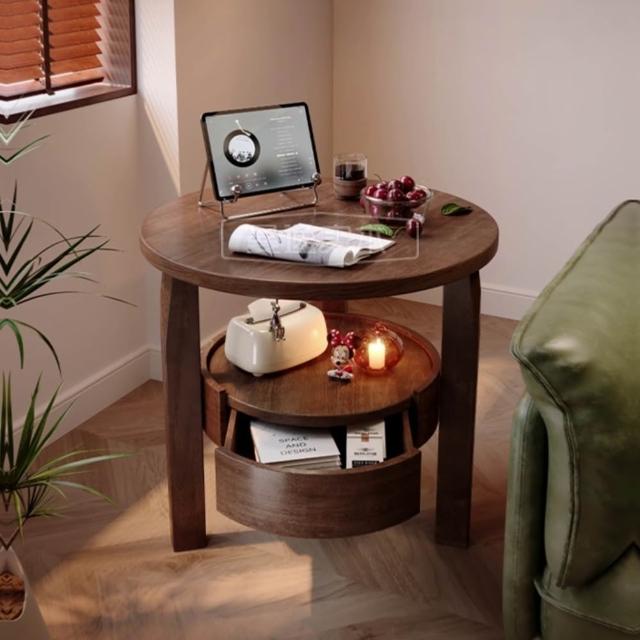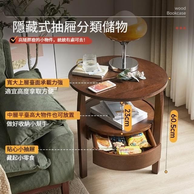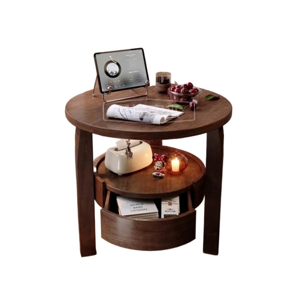 R.H 獵戰實木沙發邊几 小茶几|簡約小圓桌 客廳角几 帶抽屜收納小桌子