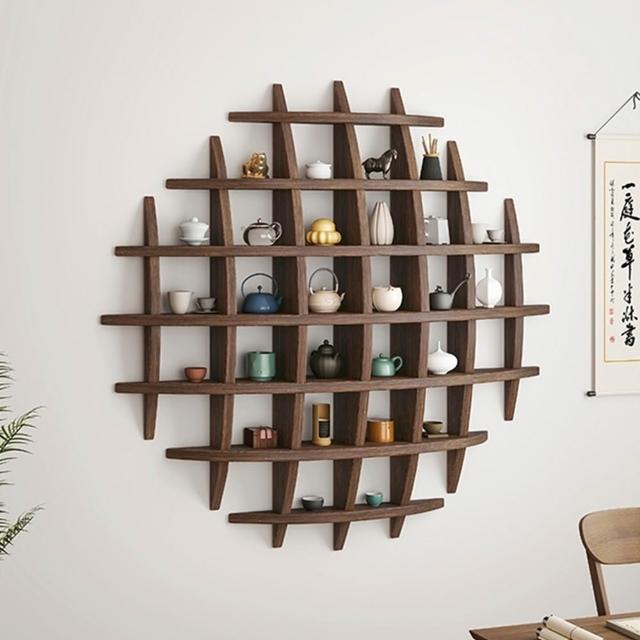 R.H 獵戰實木中式博古架|壁掛式多寶格|現代簡約掛牆置物架 茶具展示架