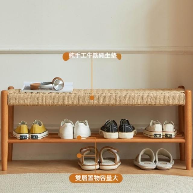 R.H 獵戰日式實木藤編換鞋凳 鞋架長凳|玄關入戶穿鞋椅 民宿復古長椅