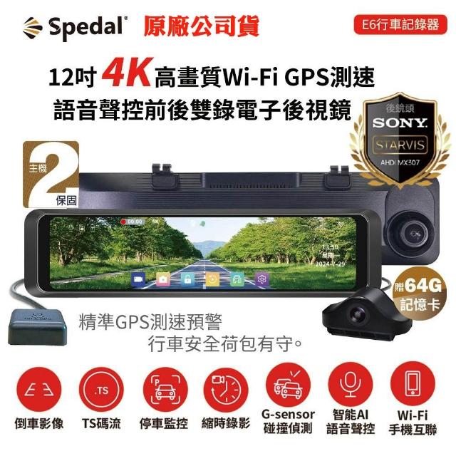 Spedal 勢必得【Spedal勢必得】4K GPS前後雙錄12吋電子後視鏡E6 +64G卡