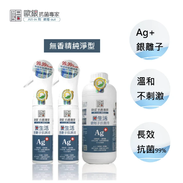 allin愛生活銀離子抗菌噴霧補充組 290ml*2、1000ml*1(銀離子抗菌液 抗菌噴霧 乾洗手 除臭抗菌 銀離子噴霧 銀離子 消毒水)