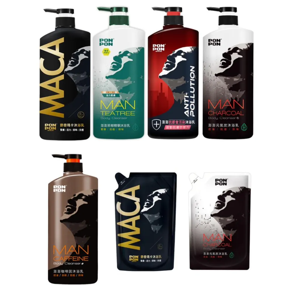 澎澎MAN 男性沐浴乳 850g瓶裝 700g補充包 (元氣炭/茶樹/咖啡因/抗都會/麝香瑪卡/拋光瑪卡) 男士 沐浴