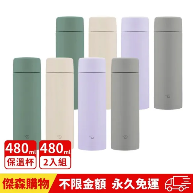 ZOJIRUSHI 象印不鏽鋼一體式中栓旋蓋式保溫杯-480ml 兩入組SM-ZB48+SM-ZB48