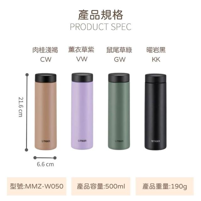 TIGER 虎牌夢重力輕量旋蓋雙層不鏽鋼保溫瓶 500ml(MMZ-W050保溫杯)