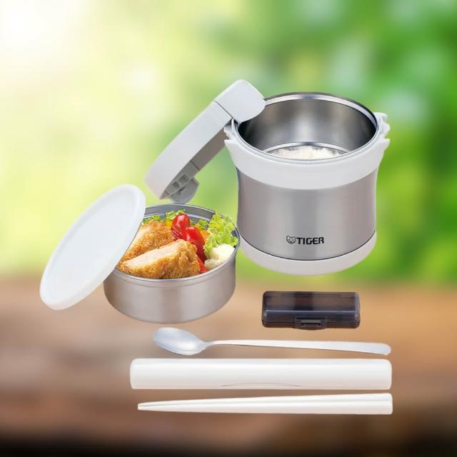 TIGER 虎牌不鏽鋼真空保溫飯盒_2碗飯 LXB-A100|12.2公分廣口設計 附專用筷子湯匙 保溫 304不鏽鋼