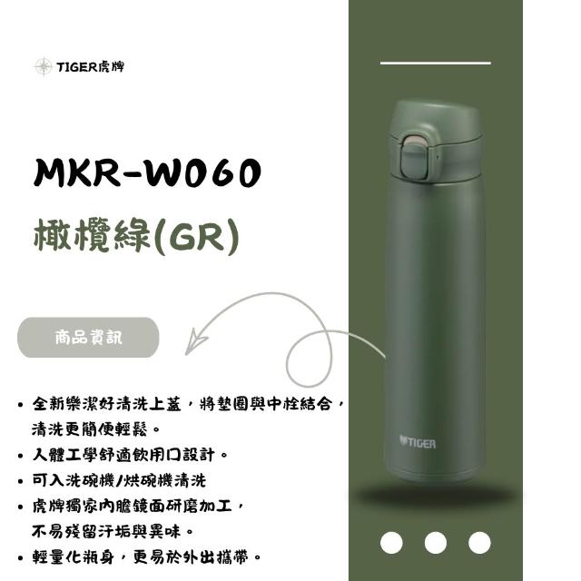 TIGER 虎牌樂潔上蓋彈蓋型保溫杯 600ml ( MKR-W060) 多色可選