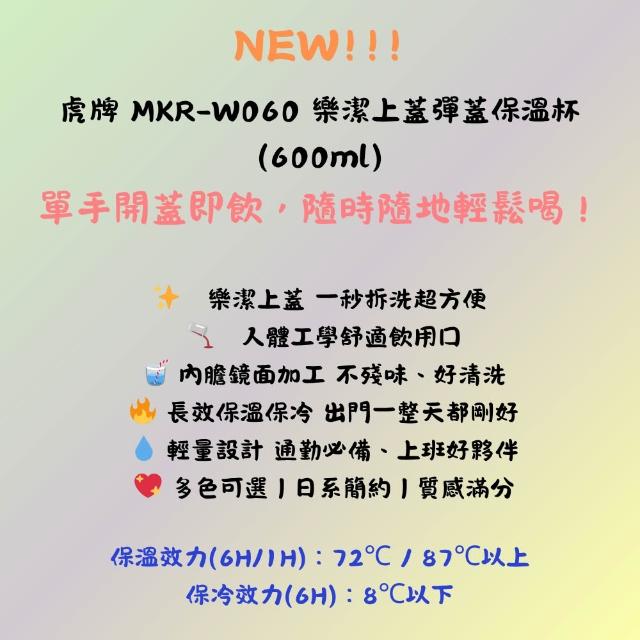 TIGER 虎牌樂潔上蓋彈蓋型保溫杯 600ml ( MKR-W060) 多色可選