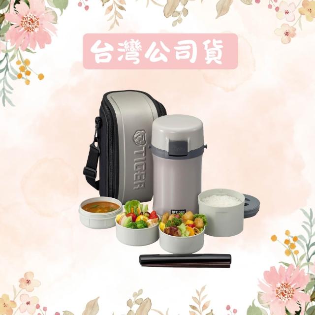 TIGER 虎牌不鏽鋼保溫飯盒 LWU-F200 3碗飯|雙菜盒大容量 微波可用 附提袋筷子 真空斷熱 不易殘溜污漬