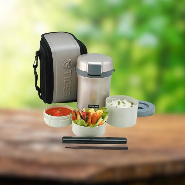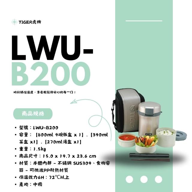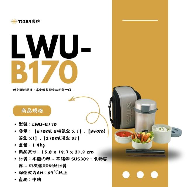 TIGER 虎牌不鏽鋼保溫飯盒 LWU-B170 / LWU-B200|3碗飯·4碗飯大容量 微波可用 附筷提袋 實用