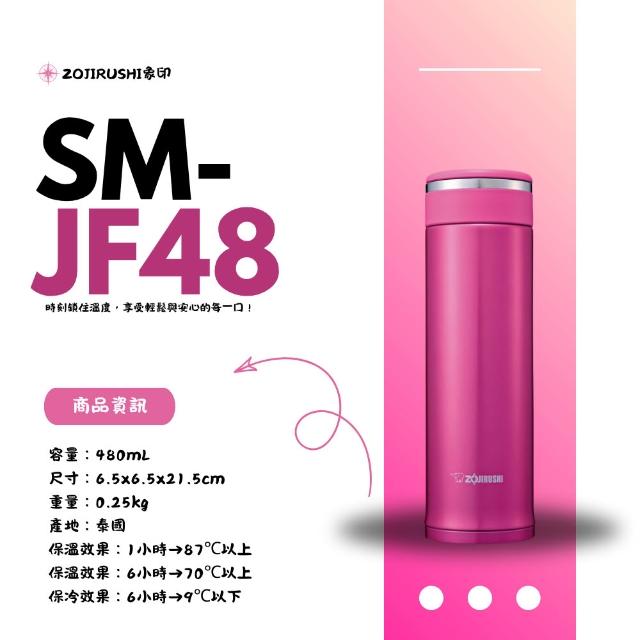 ZOJIRUSHI 象印可分解杯蓋不鏽鋼真空保溫杯 SM-JF48 480ml|透氣墊圈 防沾塗層 輕量設計 攜帶方便