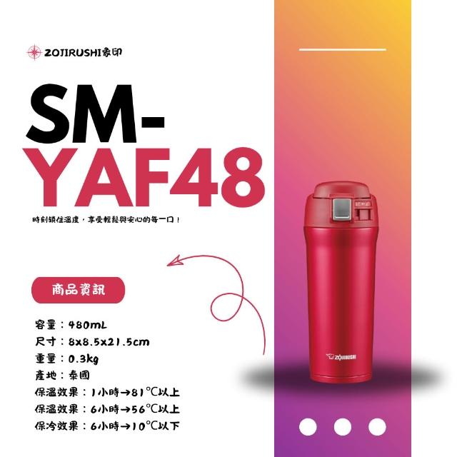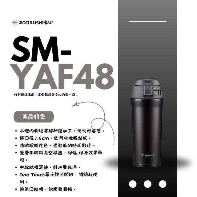 ZOJIRUSHI 象印廣口不鏽鋼真空保溫保冷杯 SM-YAF48 480ml|廣口徑 單手開蓋 電解研磨 好清洗