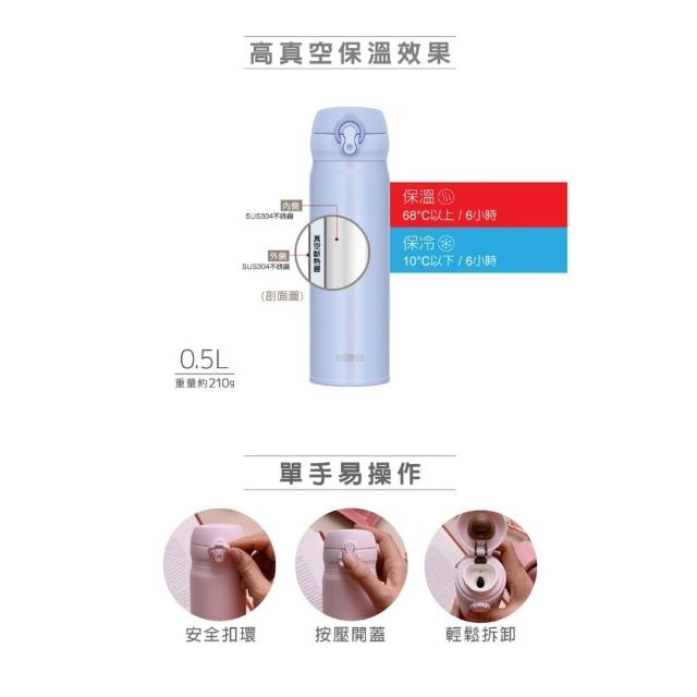 THERMOS 膳魔師不鏽鋼超輕量彈蓋真空保溫瓶 500ml 珍珠黑 JNL-504-PBK|超輕量 可拆式飲飲口座