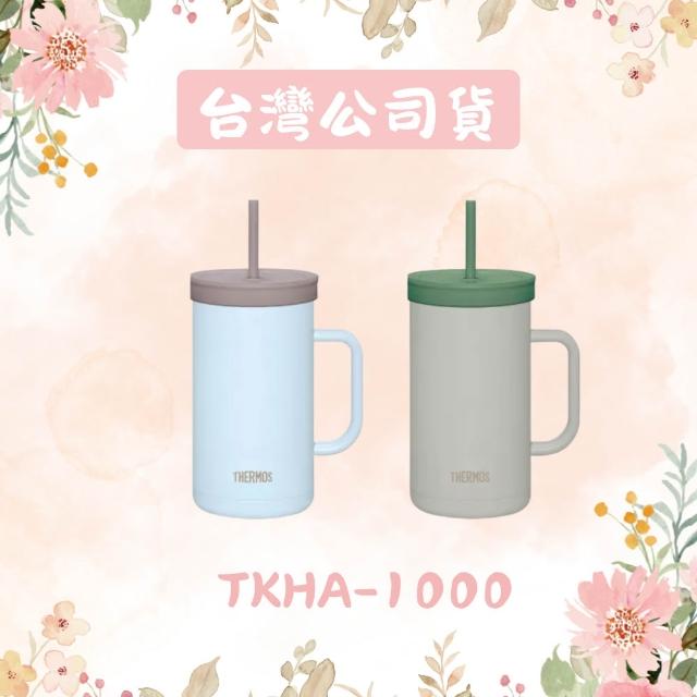THERMOS 膳魔師不銹鋼真空吸管杯1000ml- 藍/灰 (TKHA-1000系列)