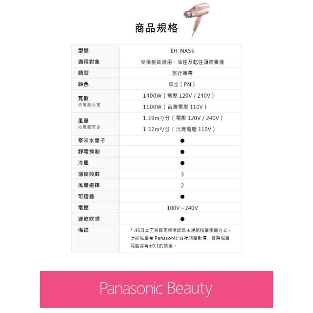 Panasonic 國際牌奈米水離子吹風機 EH-NA55-PN 粉金色